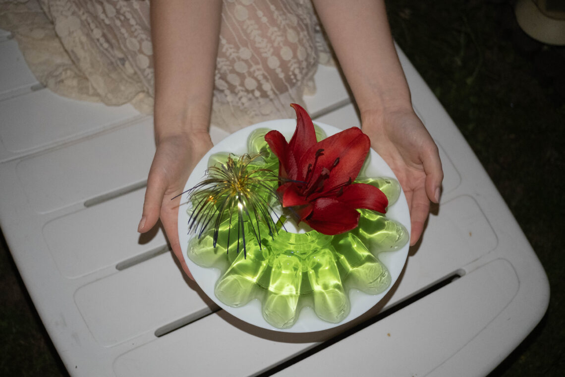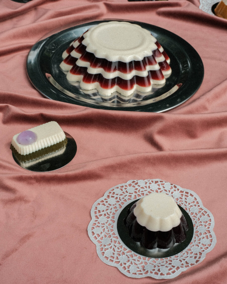 Jagoda Porębska. Food designerka. Założycielka Zastyga – pierwszego w Polsce projektu w całości skupionego na galaretkach. Tworzy desery na podstawie naturalnych składników, przywołujące wspomnienia z poprzedniej epoki. Zajmuje się również jelly stylingiem, łącząc retro formy ze współczesnymi projektami na potrzeby scenografii. Z wykształcenia kulturoznawczyni z zamiłowaniem do antropologii codzienności. Więcej na: instagram.com/zastyga.
