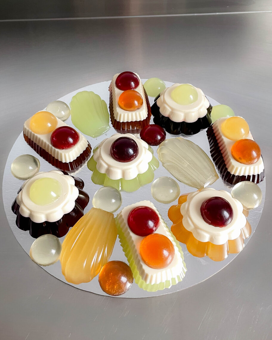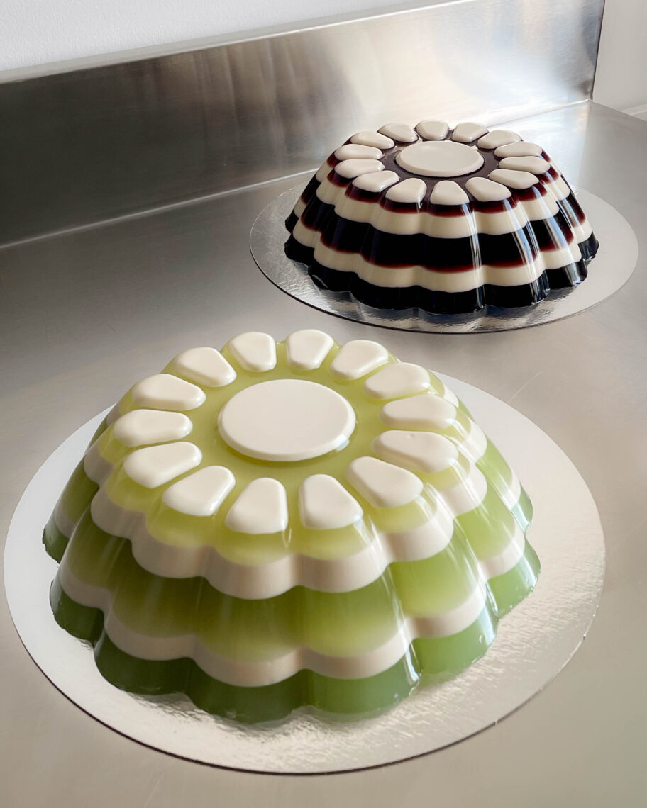 Na pewno cierpliwości. Zwłaszcza kogoś, kto tak jak ja bardzo nie lubi czekać. Galaretki to czysta fizyka i chemia. Wymagający, wielogodzinny proces. Moje często mają po kilka warstw, łączę je z panna cottą, wymyślam kolory i smaki naturalnych syropów, np. z klitorii – to taki kwiatek, który farbuje na niebiesko. Zawsze mówię, że galaretka nie wybacza. Weźmy warstwowy tort z ciasta. Też wymaga wprawy, ale każdą warstwę biszkopta można zdjąć, posmarować raz jeszcze kremem, coś oskrobać, odciąć. W torcie z galaretek, jeśli za wcześnie wylejesz kolejną warstwę, zrujnujesz tę pod spodem. Zwykle nie da się już tego uratować. Musisz zacząć od początku. Wiele galaretek popsułam przez to, że byłam niecierpliwa.