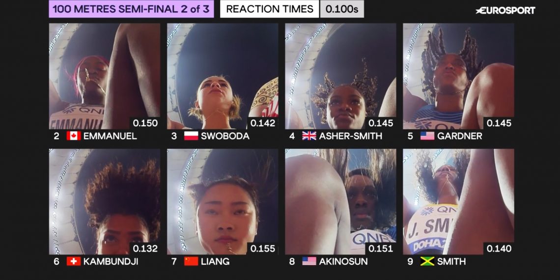 Kamery na blokach startowych, MŚ w [link id="17337"]Katarze[/link] 2019 / Fot. Screen z transmisji Eurosportu